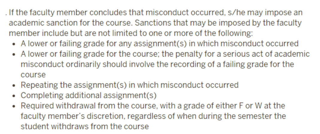当收到关于学生学术不诚信行为的举报后,任课老师会首先对事件进行初步的调查。在与学生沟通并充分调查后,如果有足够证据认定学生确实存在学术不诚信行为,任课老师会根据事情的严重程度给出相应的判罚,主要是以成绩类的处罚为主。