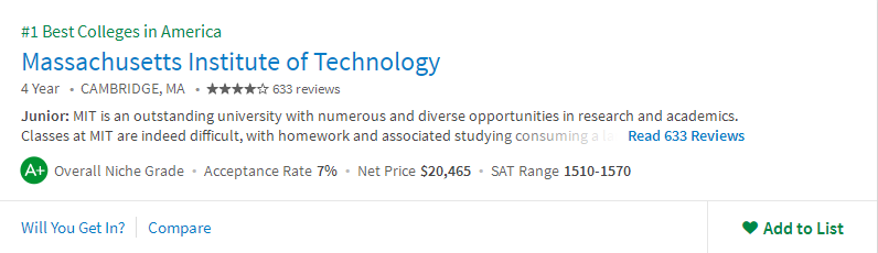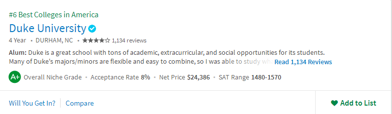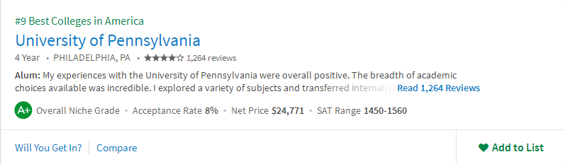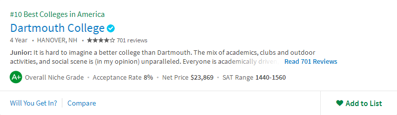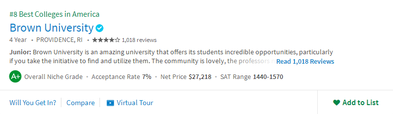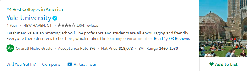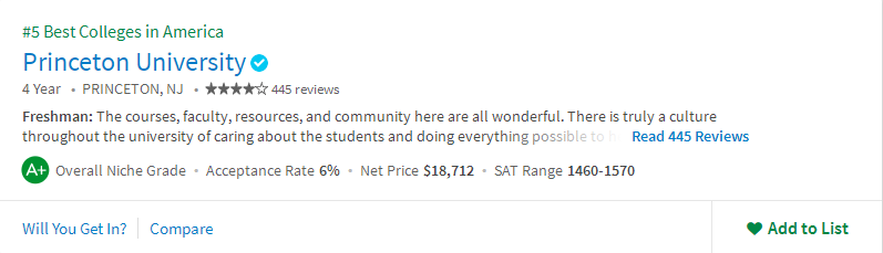 因此,Niche最得人心的地方就是拥有近500,000条来自真实学生的海量评论,从宿舍到教授,为学生提供最真实的参考。