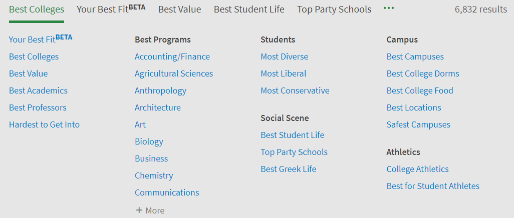 并且与其他榜单不同的是,Niche给出的最佳大学排行榜,不仅综合了大U和文理学院,而且排名的依据也不局限于学术及学校资源。还作为一个由在校学生与家长提供信息的平台,Niche的排名更多地考虑了亲身经历者所反馈的体验。