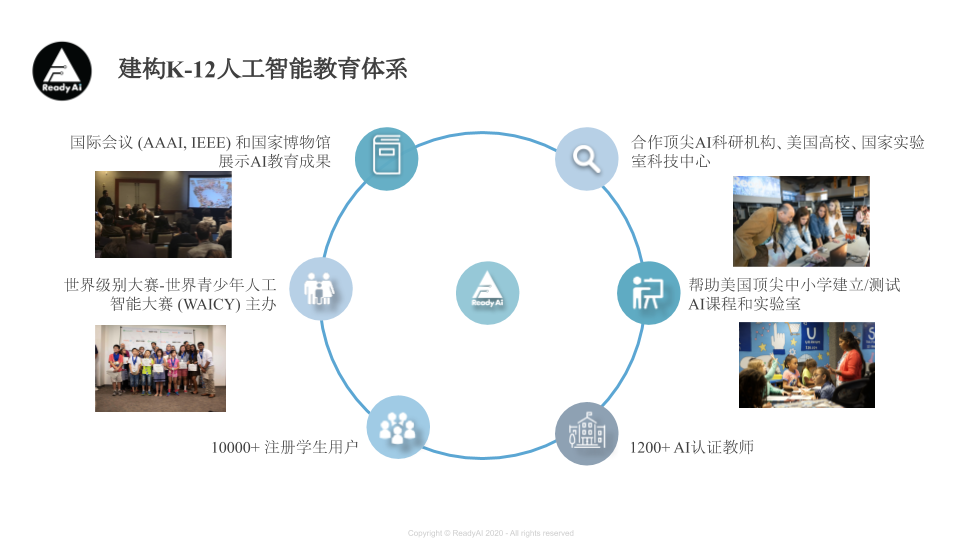 美国ReadyAI是北美权威的人工智能K-12教育机构,发布首个基于五大理念的课程《AI+ME》的中英文版本,为K-12学生提供学习人工智能平台。