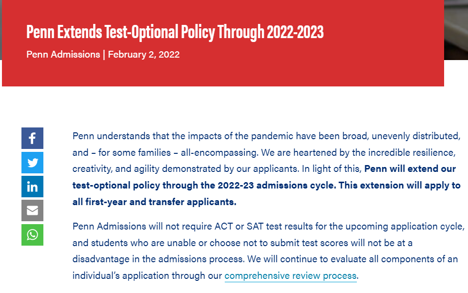 宾大也是中规中矩,未来一个申请季标化成绩可选。