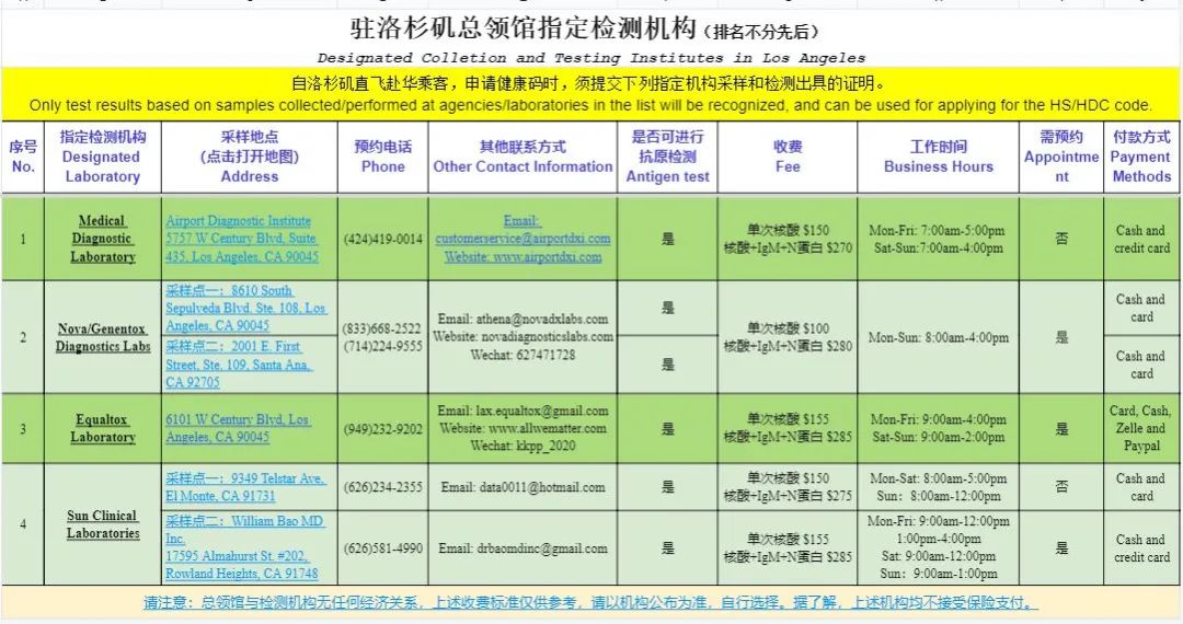 6、起飞当天,必须在四家指定检测机构中任意一家进行一次抗原(Antigen)检测。
