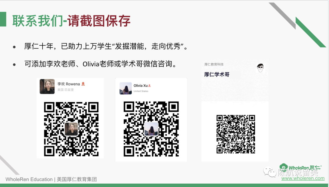 有些朋友错过了直播,或者部分内容没有及时听到,可以点击下方小程序观看讲座视频。40页超干货PPT可在后方扫码添加李欢老师、Olivia老师或学术哥索取。