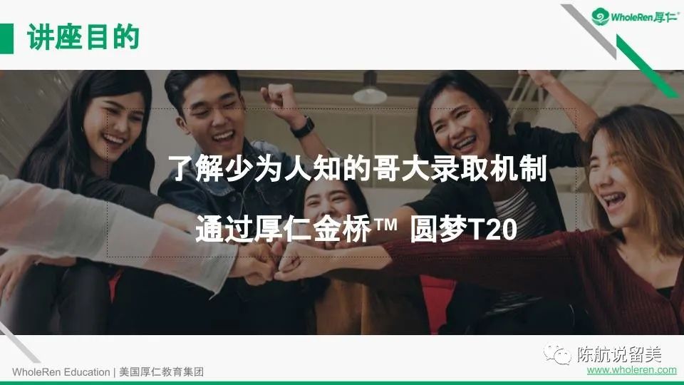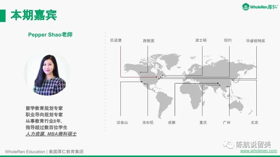 感谢各位家长同学观看12月04日的《哈佛哥大/美国T20本科录取–厚仁金桥™️项目》讲座,本次讲座特邀厚仁教育留学教育规划专家Pepper Shao老师作为嘉宾,为大将讲解和分享成功经验。