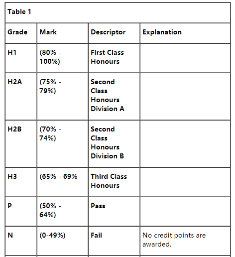 墨尔本大学作为澳洲公认排名首位的研究性大学,对在校本科生的学习成绩有严格的要求,并且学校对学术成绩的计算方式也与美国高校非常不一样。学校采用加权平均分(WAM)来评估学生的学术表现,WAM等于课程成绩乘以课程学分的总和再除于总学分,例如一个学生完成了三门课程。两门学分为12.5分,第三门为37.5分,而学生分别取得了76%, 67% 和81%的成绩。计算结果为WAM= (76×12.5+67×12.5+81×37.5)/(12.5+12.5+37.5) = 77.20%。根据学生WAM评分,学生的学术成绩分为:H1, H2A, H2B, H3, P, N几类,其对应的WAM如下: