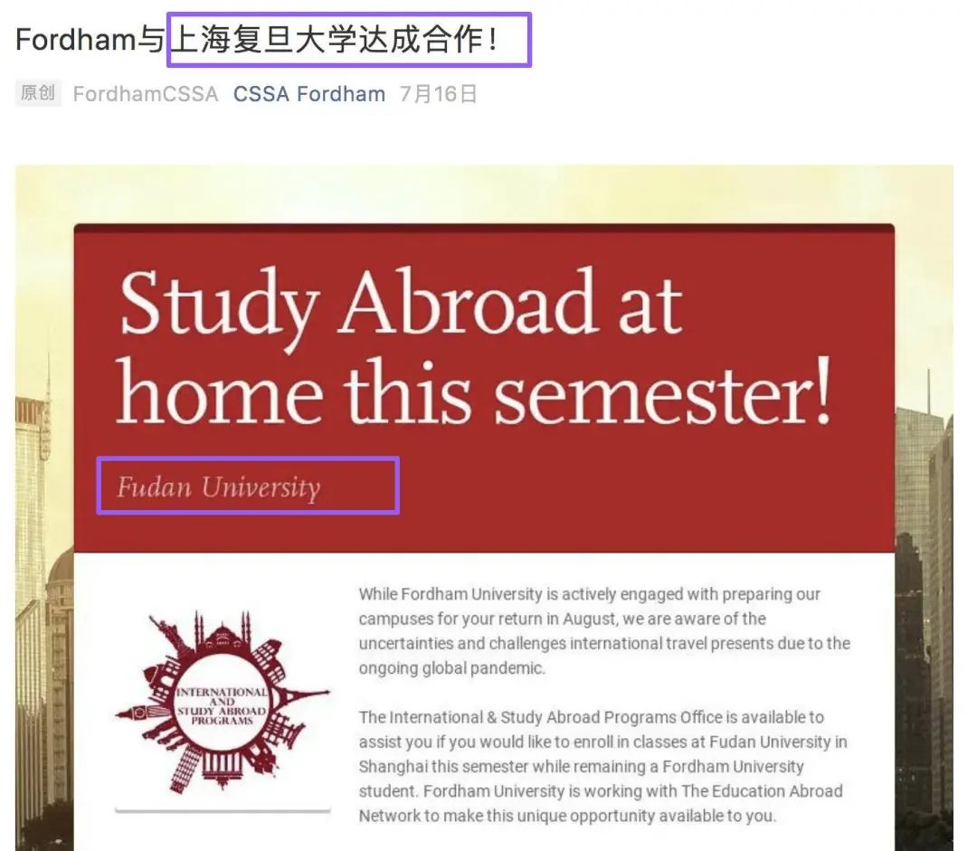 福特汉姆大学,也已和上海复旦大学一起,为留学生提供了人性化的上课方式。