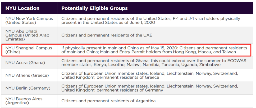 考虑到许多留学生可能受到疫情影响,无法按时返回美国参加秋季学期,纽约大学直接将自己遍布全球的16个校区开放给了留学生们。