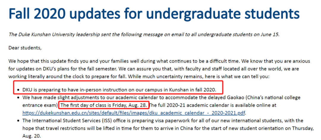 同样拥有国内小区的昆山大学,也允许具有中国国籍或者持有中国绿卡的学生,在昆山杜克大学完成2020年的秋季学期。