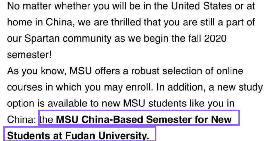 根据密西根州立大学留学生学者办公室的公告,MSU已经正式开始了一个叫做「MSU中国新学期」的项目,参与该项目的留学生有机会在南京农业大学或者上海复旦大学度过2020年秋季学期。