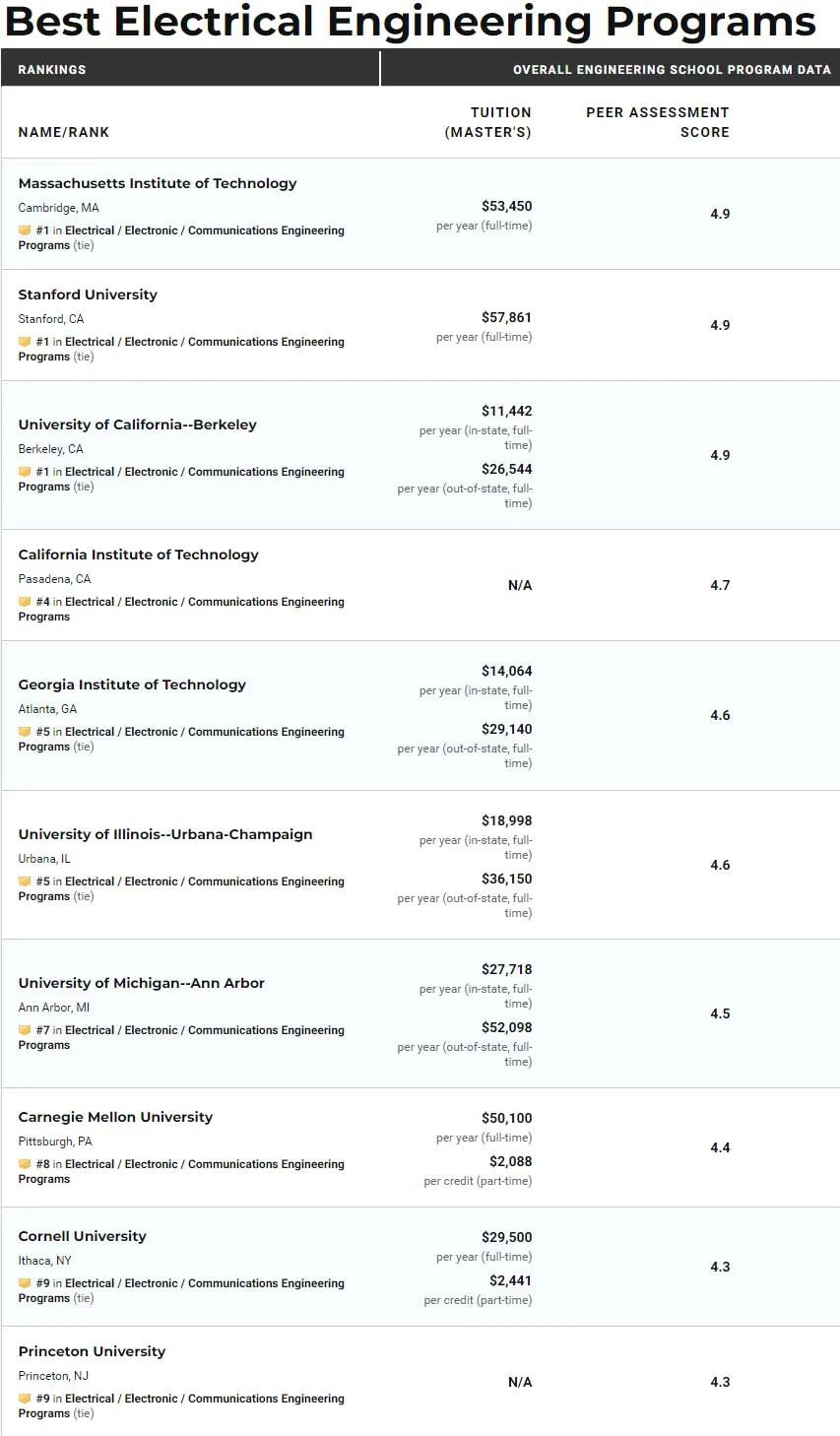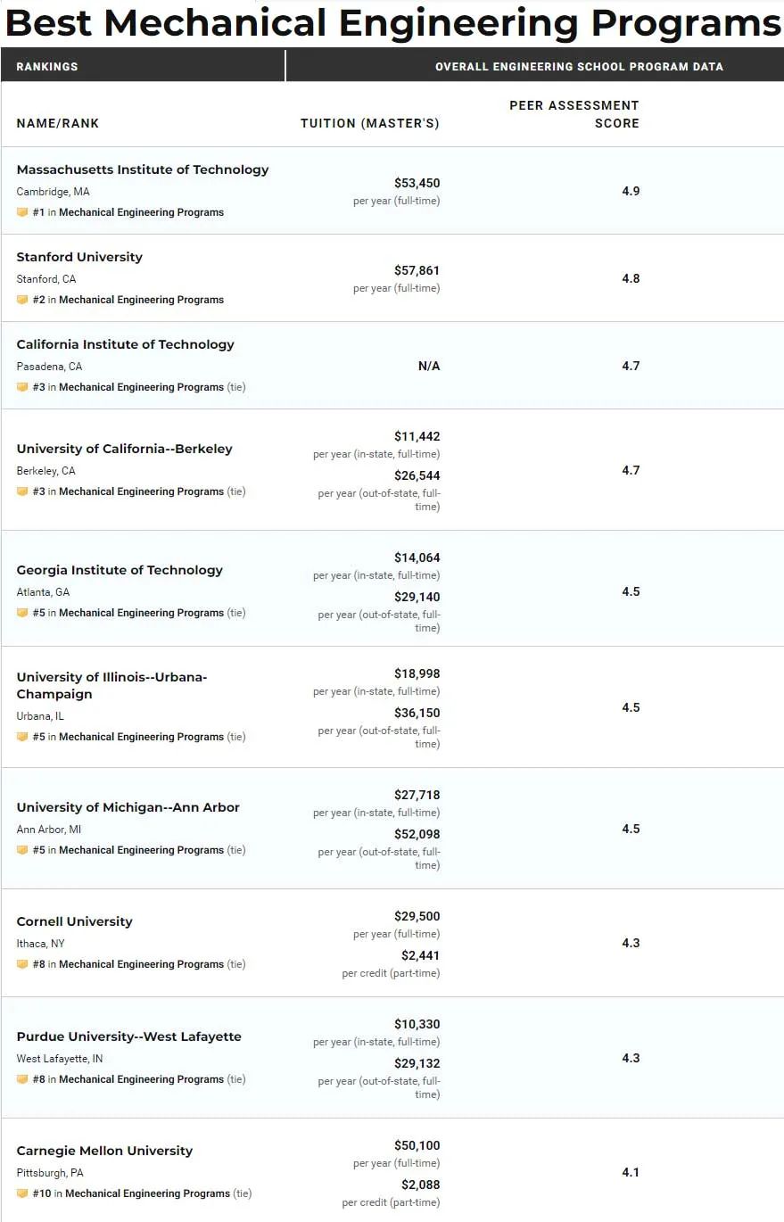 工程学院排名TOP 3仍被三大名校麻省理工学院、斯坦福大学、加州大学伯克利分校占据。普渡大学由去年的第七名升至并列第四,而密歇根安娜堡落到了第七位。