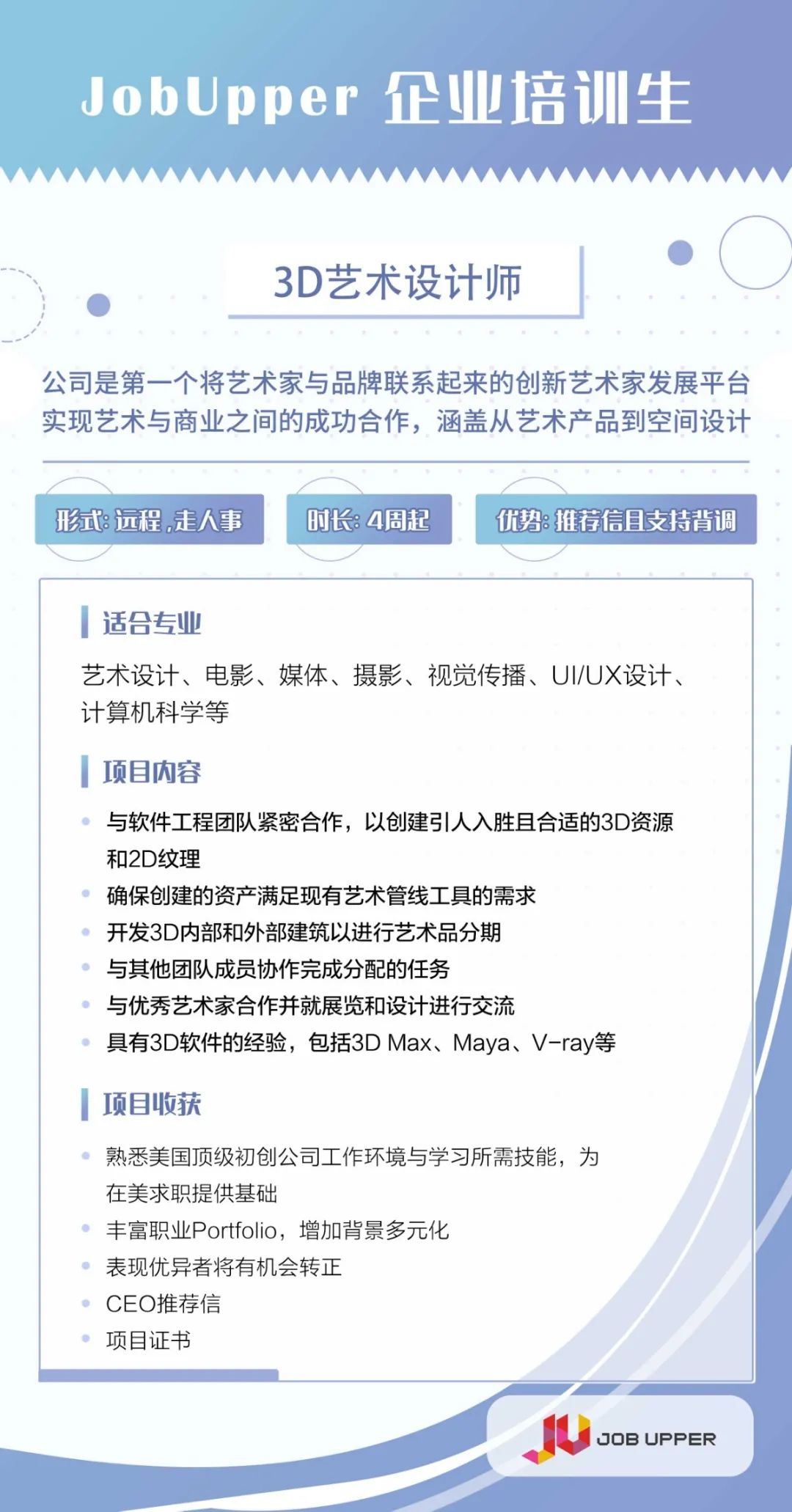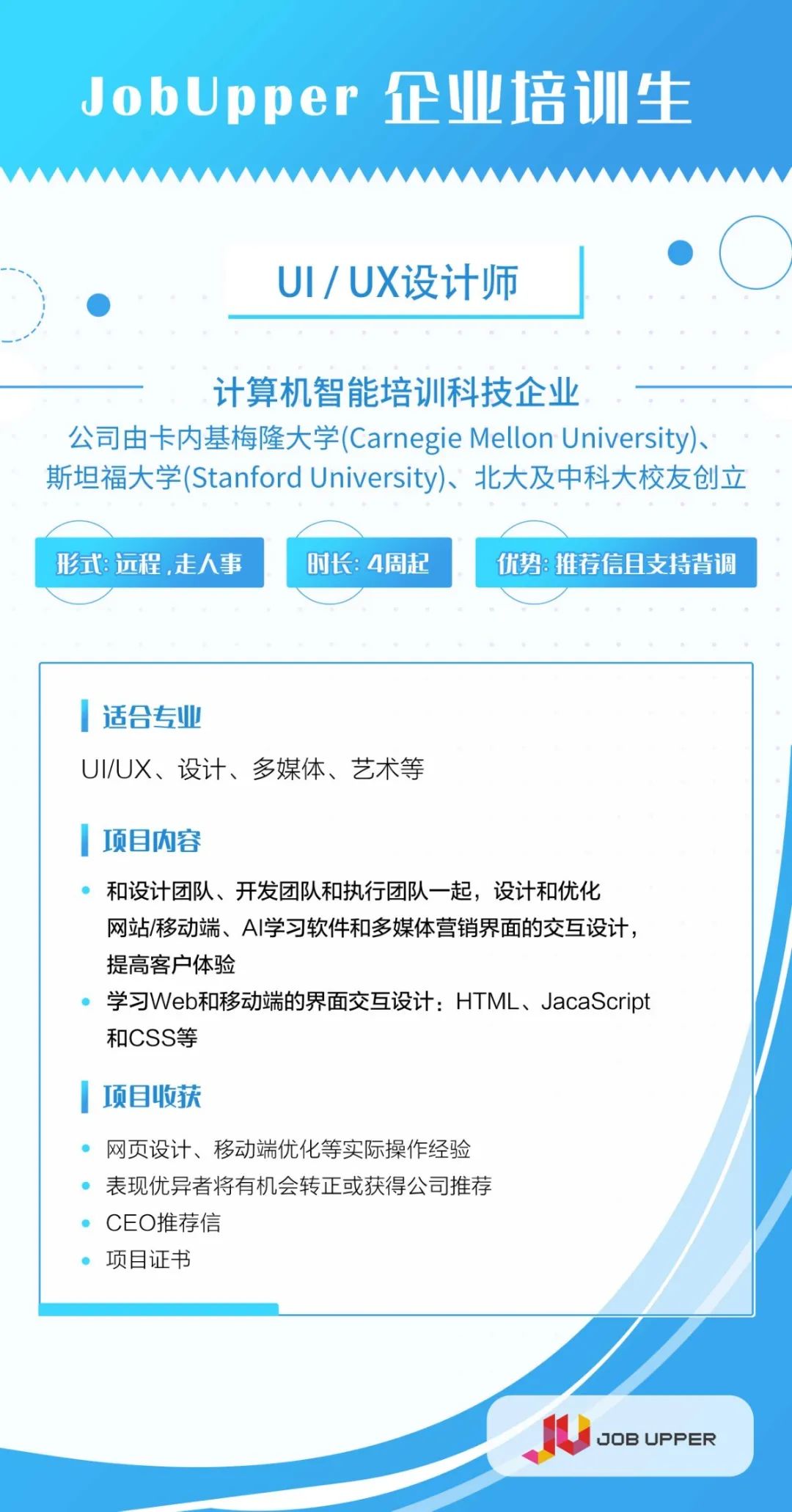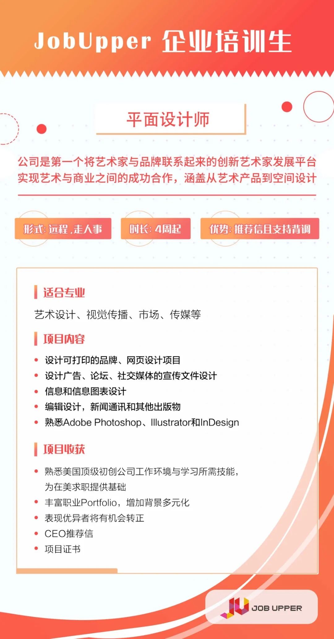 寒假马上来临,一波适合UIUX/艺术设计学生的实习机会来啦!务必抓住机会,提早积累自己的在美实习经历!