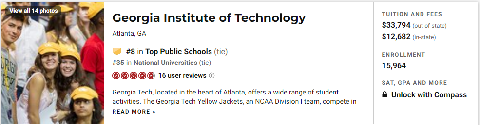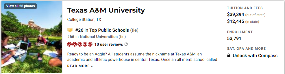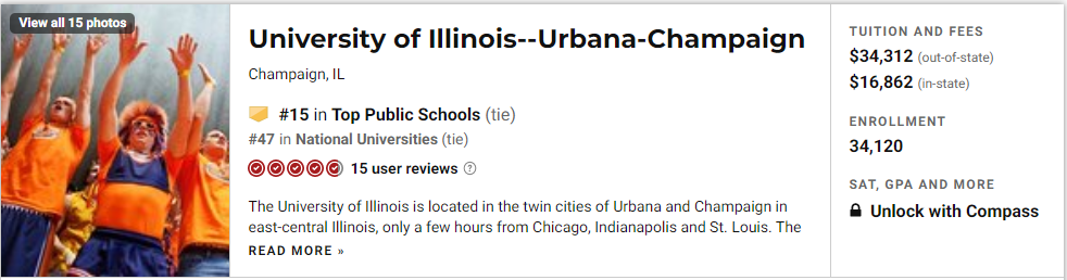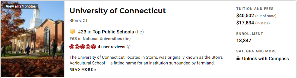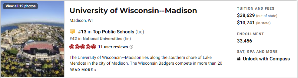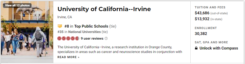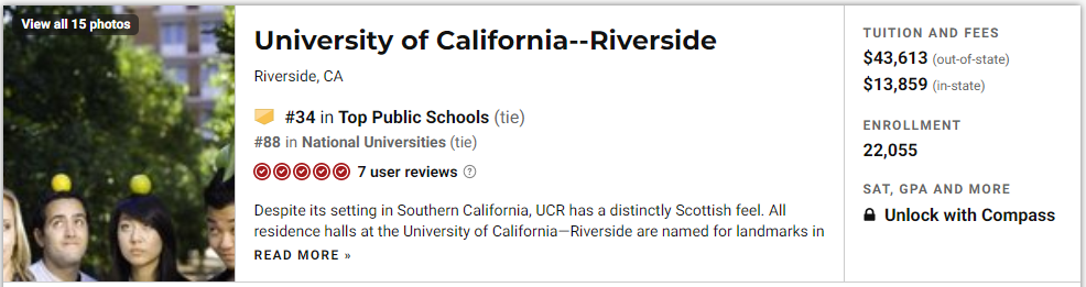 我们先来看看Top 10,前三名分别是:加州大学洛杉矶分校,加州大学伯克利分校和密歇根大学安娜堡分校,UC系不愧是公立学校扛把子,前三名就占了两席。