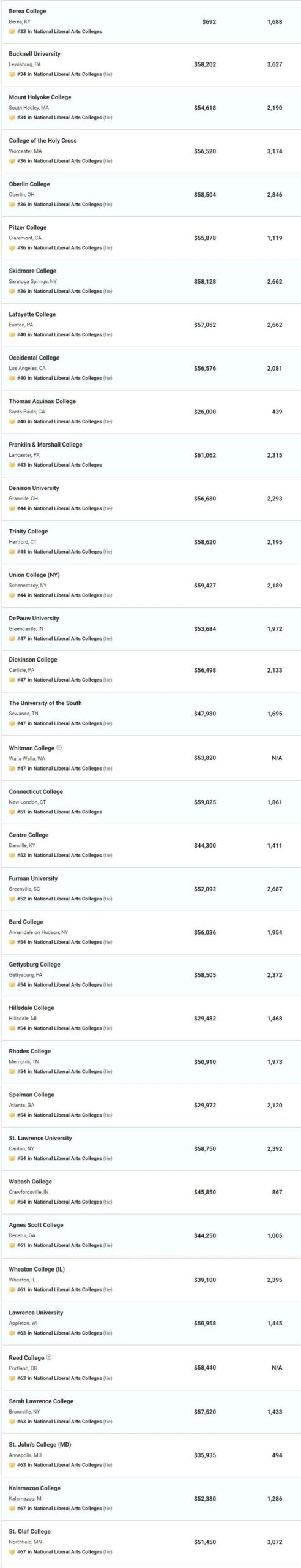 2021年USNews文理学院Top60