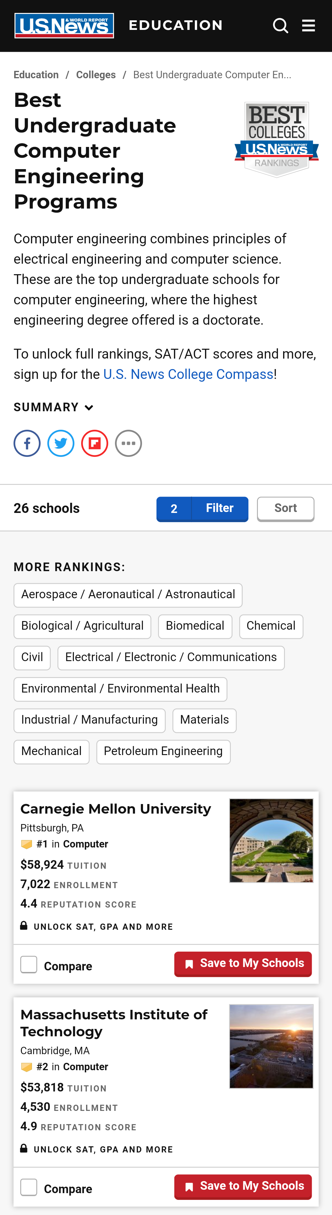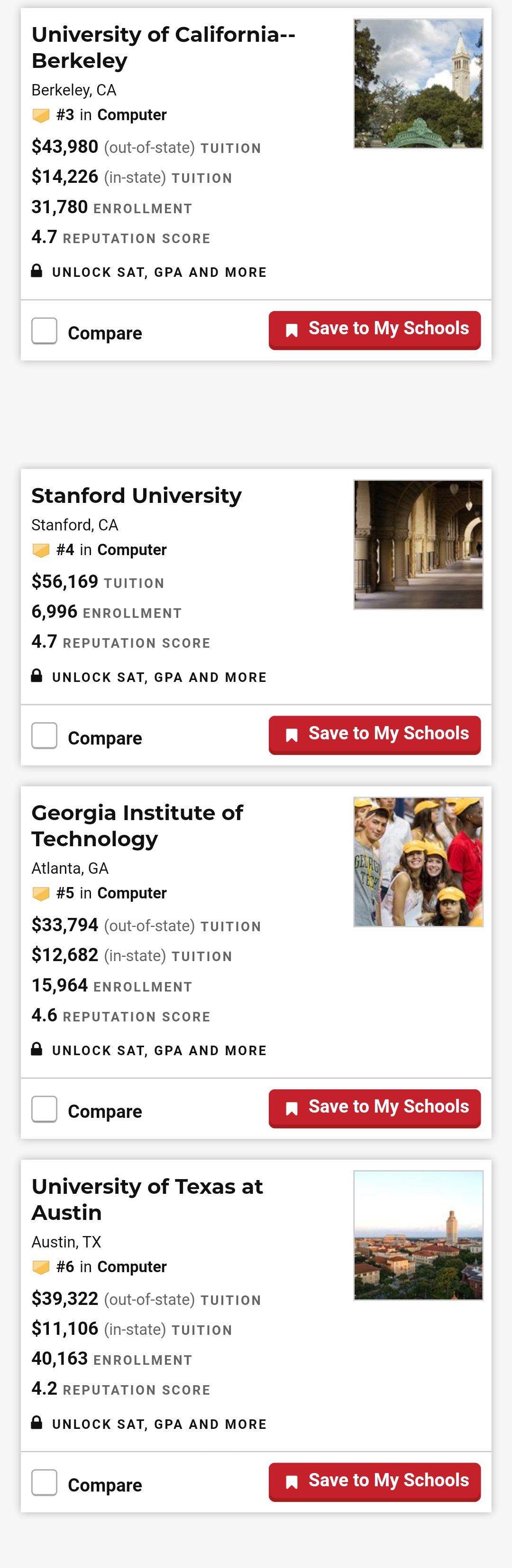 之前也说过,2021U.S.News排名首次对计算机专业进行了排名,我们再来看看计算机专业部分榜单: