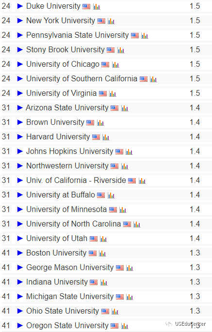 同时,也有几所在US.News美国大学排名不是很高的公立大学在计算机领域表现突出,甚至超越了麻省理工、芝加哥大学、哥大和耶鲁等藤校。