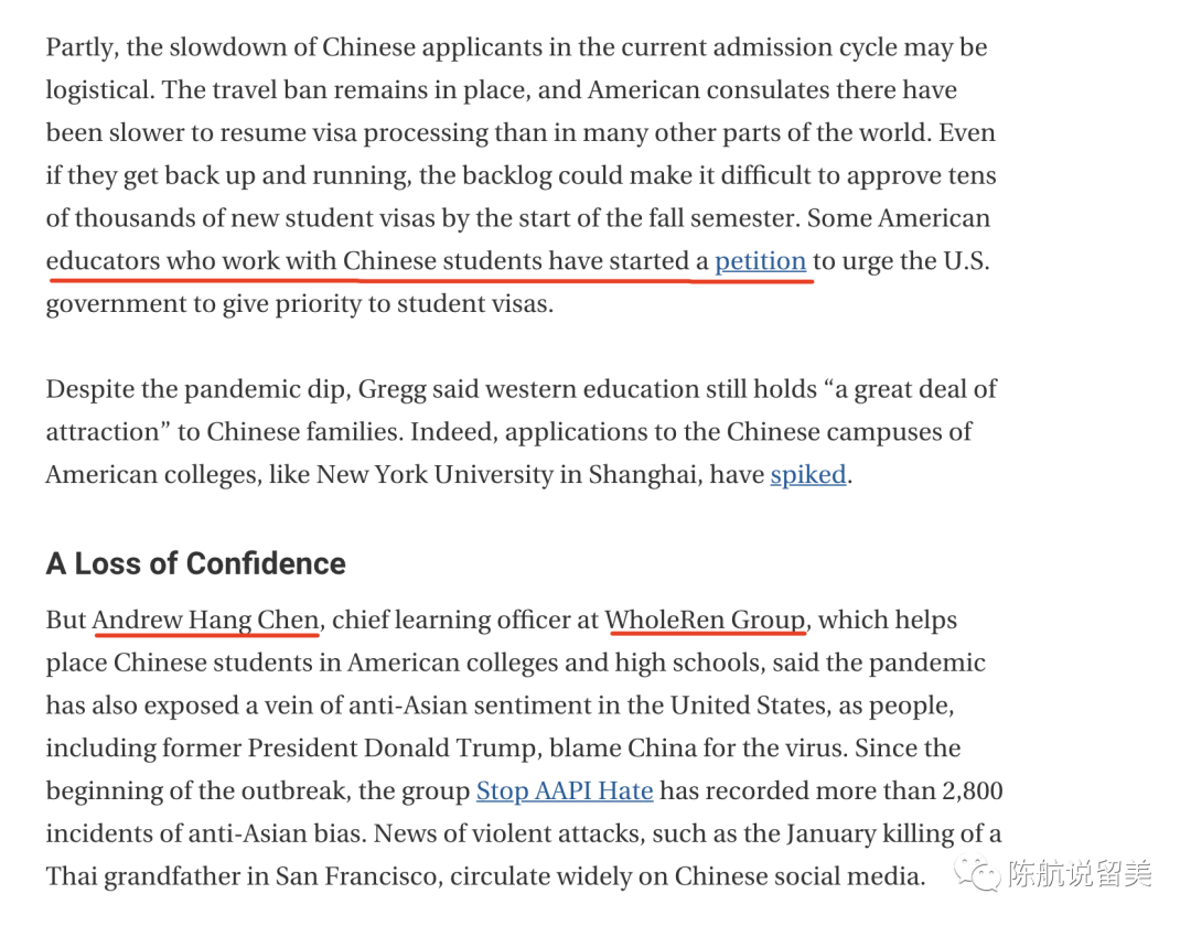美国高等教育时报,今天出了一篇文章,《中国学生和美国大学的罗曼史到头了吗?》,这篇报道中提到了我们正在做的F1学生签证请愿活动,也附加了一些对我的采访内容。