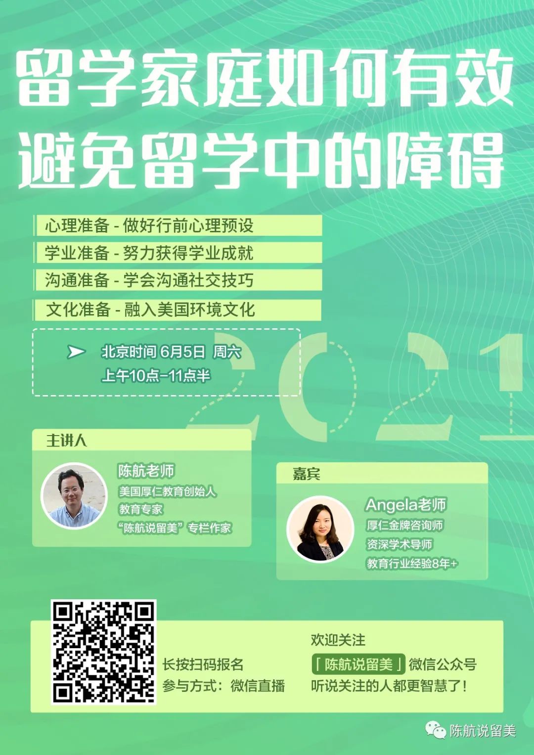 各位大咖业务非常繁忙,此次同台,承蒙支持,实属不易。希望能帮助到学生和家长。讲座报名方式附上,请代为在你们学校群传播。目前看来包机家长领袖会议的模式,比较有效。如果你们学校家长群有群主或者包机群领袖,可以私信我 陈航老师 andrewhangchen,核实后,会加到包机领袖会议中,共同谋求福祉,做合乎众多学校学生和家长的决定,不论学校大小。目前有:NYU,雪城大学,贝茨大学,UCI,深圳中加学校,WashU,希望更多学校的领袖加入。