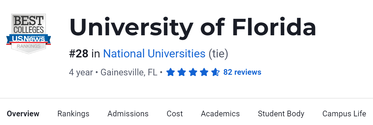 在2024年US News美国大学排名中,佛罗里达大学排名第28。