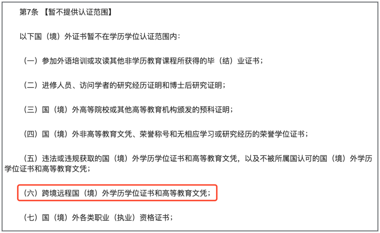 留学服务中心明确指出,跨境远程国外学历并不在认证范围之内。