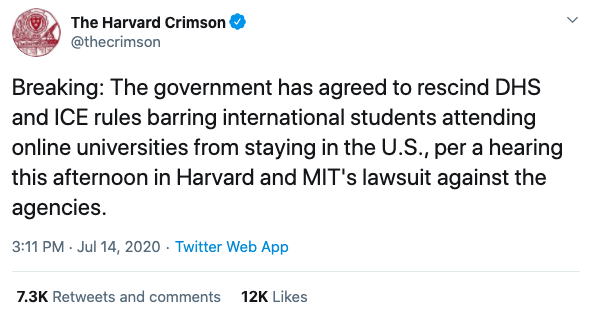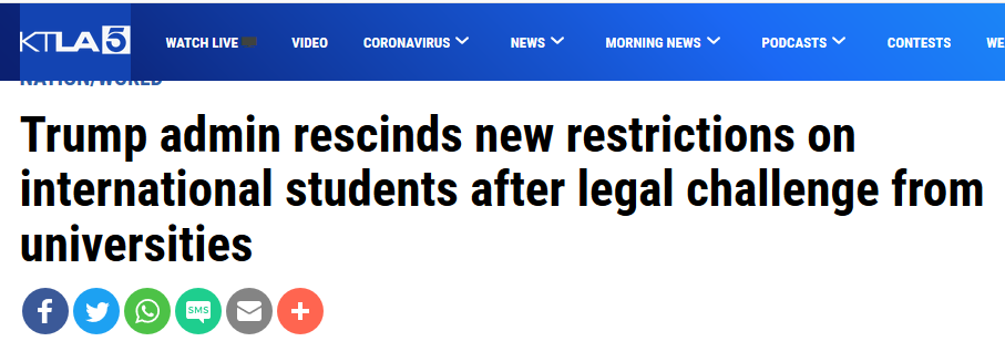 然而,这项「国际学生禁令」竟然在法院开庭之前被迅速撤销了,哈佛与MIT就这样奇妙的“不战而胜”。我们来看看怎么回事
