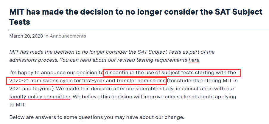 虽然,不少学校因为疫情原因,调整考试政策,不再强制要求提交SAT2成绩,如 哈佛大学,MIT,Caltech等,但是仍然要求提交SAT或者ACT成绩。