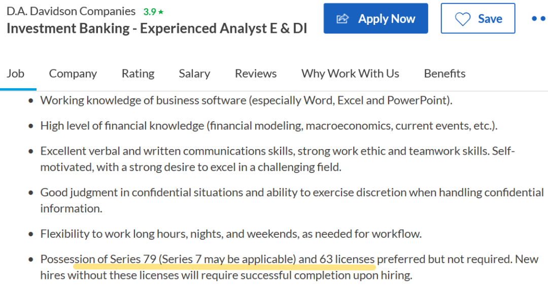 下面是小编在美国著名的找工作网站indeed上面截图的投行工作的要求: