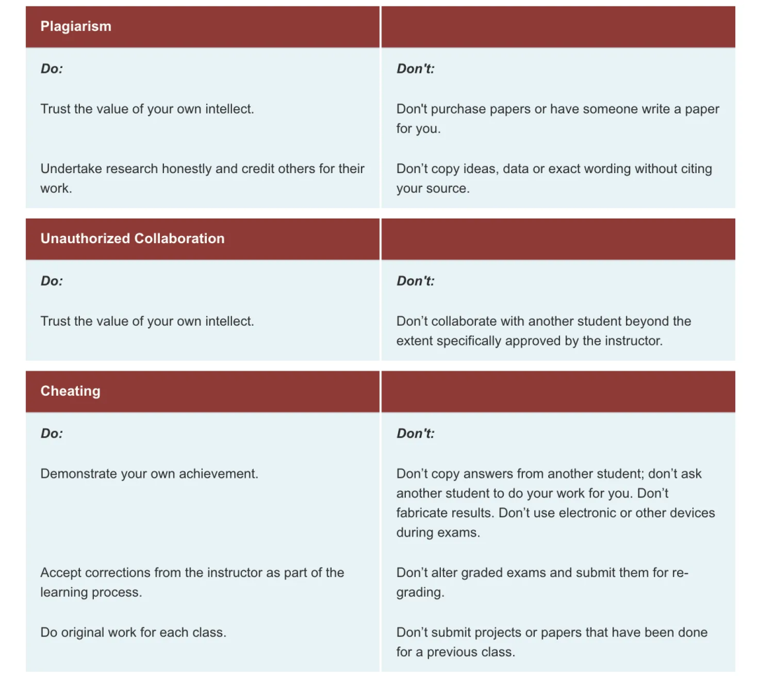 在syllabus中,老师都会有一项单独预留出来给学术诚信,一定要仔细阅读并且确保遵守,如果课程有针对单独的作业或者考试有任何额外的要求,一般老师也会通过邮件提前发送告知,或者给出作业或者考试的单独指导,确认好作业和考试要求再去进行书写也是必要的。