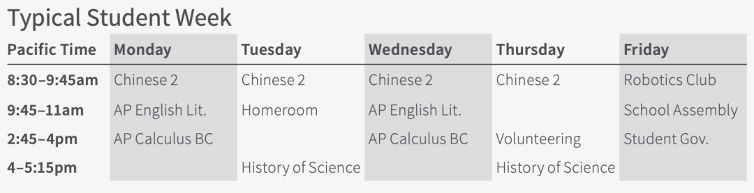 所有的授课形式都是实时,每门课程每周至少两次授课,每个课程人数少于12人。