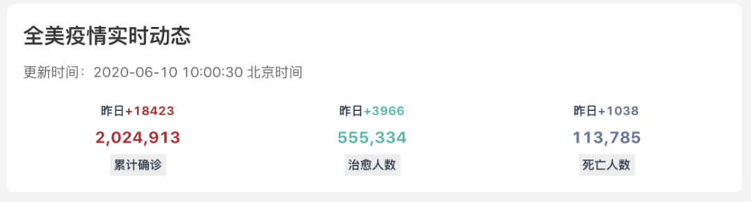 截至撰稿时,美国新冠病毒累计确诊人数已达到202万余人,累计死亡人数超过11万余人。
