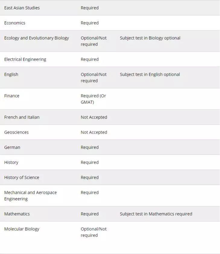 而除了普林斯顿大学,其他很多学校的部分专业项目也取消了GRE的硬性要求,变成“不要求提交”。如下,这些是常见热门学校的部分项目: