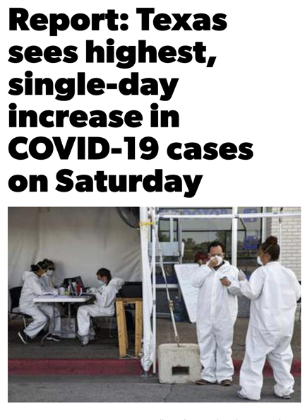 德州重新开放,人有粗狂,不戴口罩,可能是有这样的原因。德州政府,有足够的医疗设备,支持这些确诊的病人。