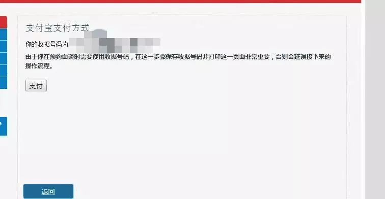 保存收据编号。支付流程完成后,请打印收据编号并妥善保管。一旦丢失,将无法替换。如不提供收据编号,也无法进行预约。