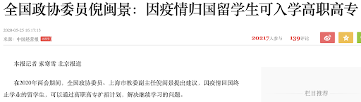两会开完了,我从美国转学的专业角度来评论一下被误解的,上海教委倪闽景副主任说的“留学生转学回国读高职高专”提议。