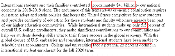 所以,我们可以看到美国的高校,美国的政府、美国的议会都纷纷表达出了国际学生对于美国的重要性,无论是从文化教育交流层面,还是从经济层面来看。