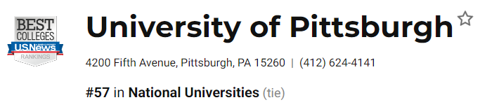 在2020年USNews美国大学排名中,匹兹堡大学排名第57。