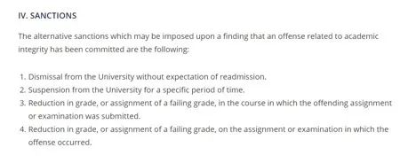 任何学术不诚信的行为都将招致相应的学术处罚。对发现与学术诚信有关的违纪行为,可能会被处以以下的处罚:
