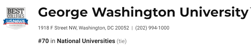 2020年USNews美国大学排名中,乔治·华盛顿大学排名第70。