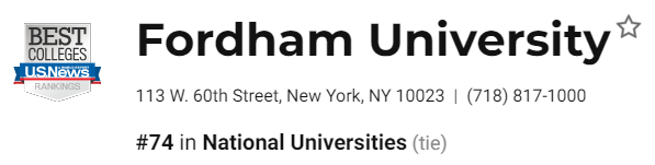 在2020年USNews美国大学排名中,福特汉姆大学排名第74。