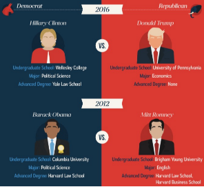 另有美国网友统计的1913年以后的总统专业,发现超过半数的都是历史、政治、经济专业的。以前两届的总统选举为例,总统候选人的专业以政治和经济为主。