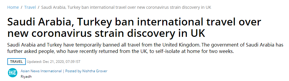 英国在发现变异后第一时间进行通报,而各国也迅速对英国航班入境开始了限制令。