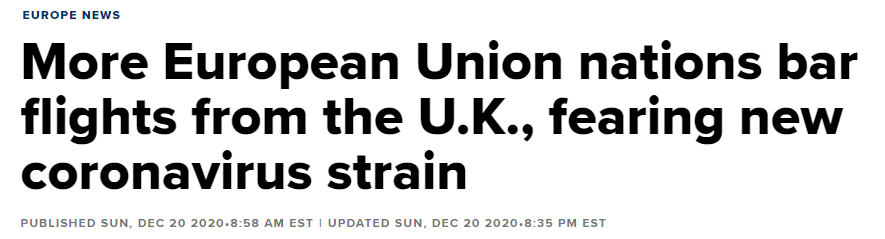 在英国报告了新冠病毒突变并采取了更严格的封锁措施后,与其临近的各国先后采取了相关措施,希望将变异的病毒拒之门外。