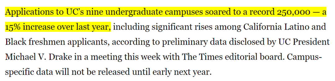 不过,具体UC的各个分校数据,要到明年年初才能发布。