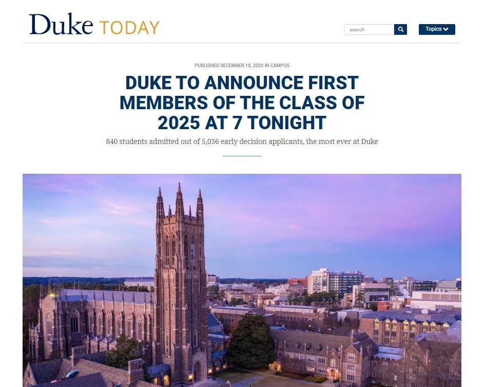 之前,杜克大学就已经透露了今年的早申情况。周末的时候,杜克大学又进一步确定了今年更详细的早申数据,学校指出: