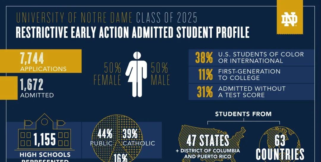 上周六,圣母大学宣布今年EA录取情况,大学一共录取了1,672名申请人。