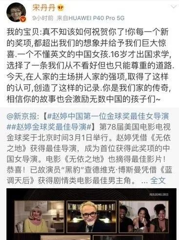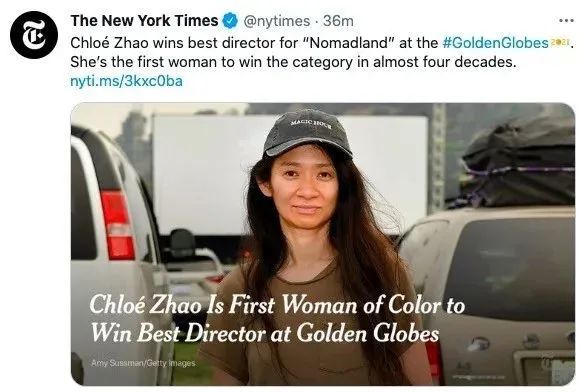 纽时:《赵婷成为首位获得金球奖最佳导演的非白人女导演》
