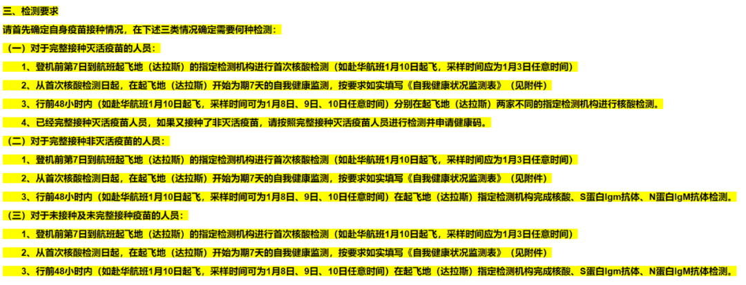 2022年1月13日(含)及此后乘自达拉斯直飞赴华航班的旅客需要遵照执行