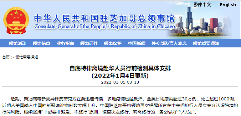 就在近日!中国驻美使馆更新了“史上最严”的赴华人员行前检测政策!1月13日起,赴华健康码申请政策进行重大调整,将实施史上最严格的回国政策。