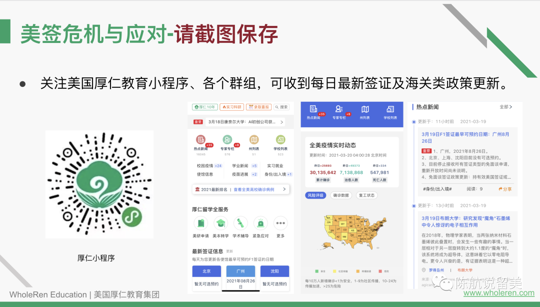 感谢各位家长同学观看周二的《第三国美签准备》讲座,本次讲座的特邀嘉宾张老师是厚仁签证中心的专家。两位老师携手,为大家解读学生签证现状及第三国签证的可行性。