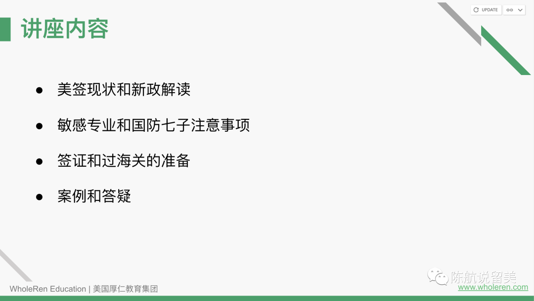 有些朋友错过了直播,或者部分内容没有及时听到,可以前往B站观看讲座视频。在公众号后台输入关键词“签证更新”即可获得本次讲座PPT。
