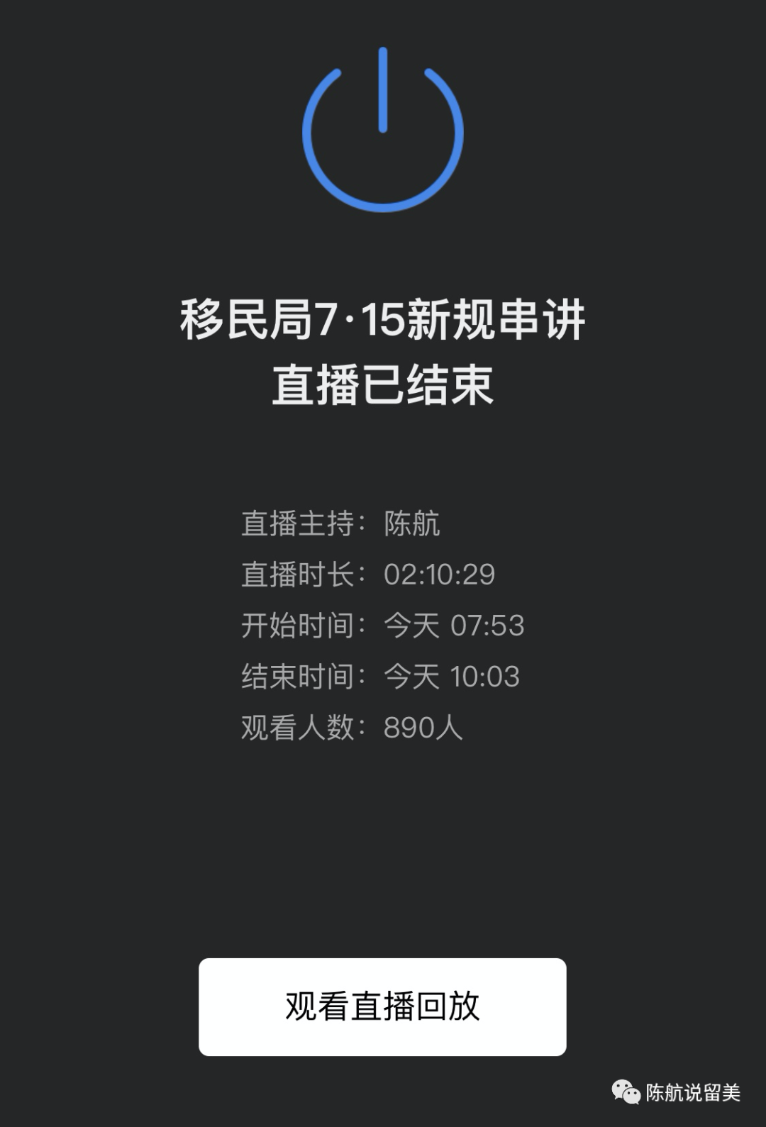感谢各位家长同学观看了我今天早上的移民局新规串讲直播,共890人观看,谢谢各位的支持,很高兴能通过这次讲座为大家讲解清楚现行规定。